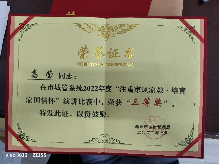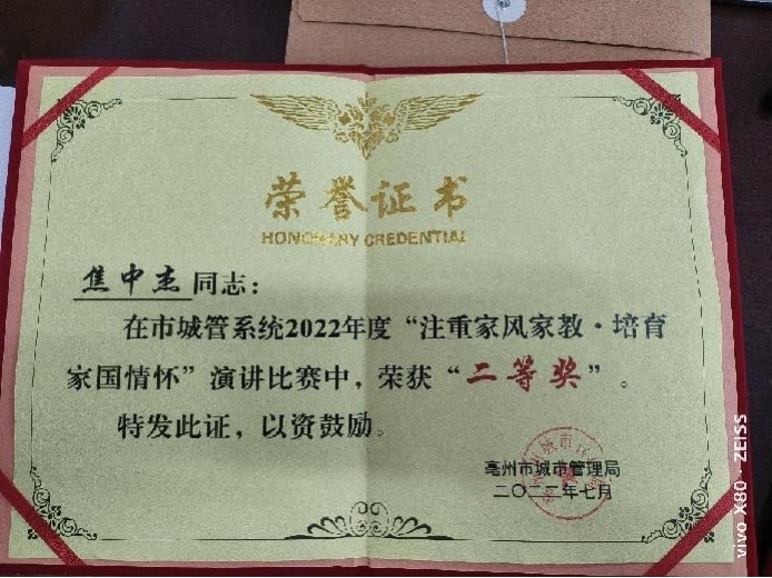 為深入貫徹落實(shí)習(xí)近平總書記關(guān)于“注重家庭、注重家教、注重家風(fēng)”重要指示精神,大力弘揚(yáng)中華民族家庭美德,切實(shí)以家風(fēng)促作風(fēng),由亳州市城市管理局舉辦的“注重家風(fēng)教育?培育家國情懷”演講比賽已經(jīng)順利結(jié)束。賽中市制水公司焦中杰、高瑩兩位同志緊扣“注重家風(fēng)家教?培育家國情懷”的主題,立足崗位,結(jié)合實(shí)際,經(jīng)過激烈的角逐最終分別獲得了二等獎(jiǎng)、三等獎(jiǎng)的優(yōu)異成績。